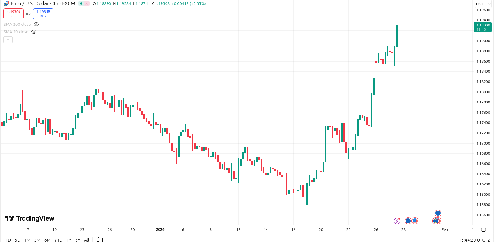 Если посмотреть на график пары доллар/евро, то здесь американская валюта упала с 1,158 евро до 1,193 евро (последний уровень падения наблюдался в 2021 году).