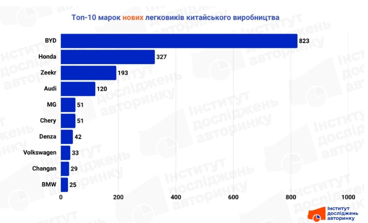 Из 6787 новых импортированных машин, зарегистрированных в Украине в августе 1809 года, были из Китая. Это самый высокий показатель всего времени наблюдений и заметного роста по сравнению с июлем (24,5%) и июнем (19,6%).