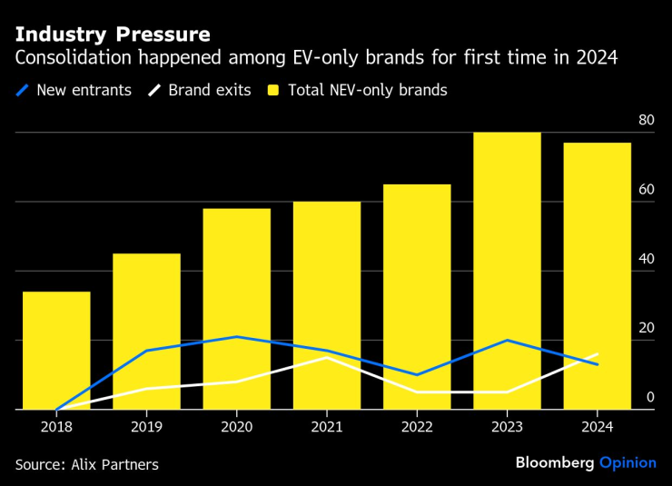 Давление на консолидацию отрасли произошло среди брендов, которые впервые производят только электромобили в 2024 году.