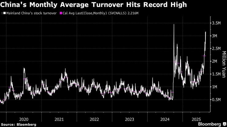 Индекс CSI 300 подскочил на 10% в августе, его лучшие результаты из ралли в сентябре прошлого года. Появились тревоги. Рыночный оборот достиг рекордных уровней. Превосходная сумма маржинальных операций, в которых инвесторы заимствуют деньги, чтобы купить местные акции на местном рынке, также подскочила к историческому максимуму, что сигнализирует о растущем аппетите к риску.