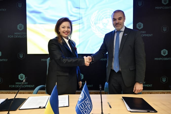 Финансовое соглашение подписали первый заместитель министра общин и территорий Украины Алона Шкрум и заместитель постоянного представителя ПРООН в Украине Христопрос Политис.