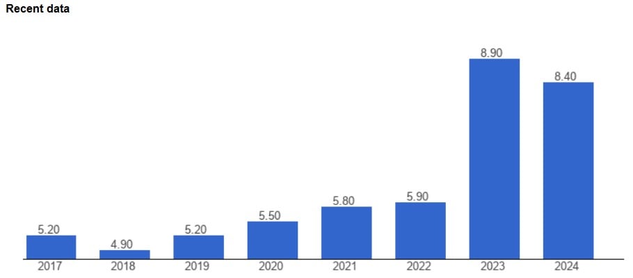 Текущий показатель (2024 г.): Индекс Украины составляет 8,4 балла из 10. Это немного лучше антирекорда 2023 года (8,9 балла), но все же свидетельствует о крайне высоком уровне эмиграции.