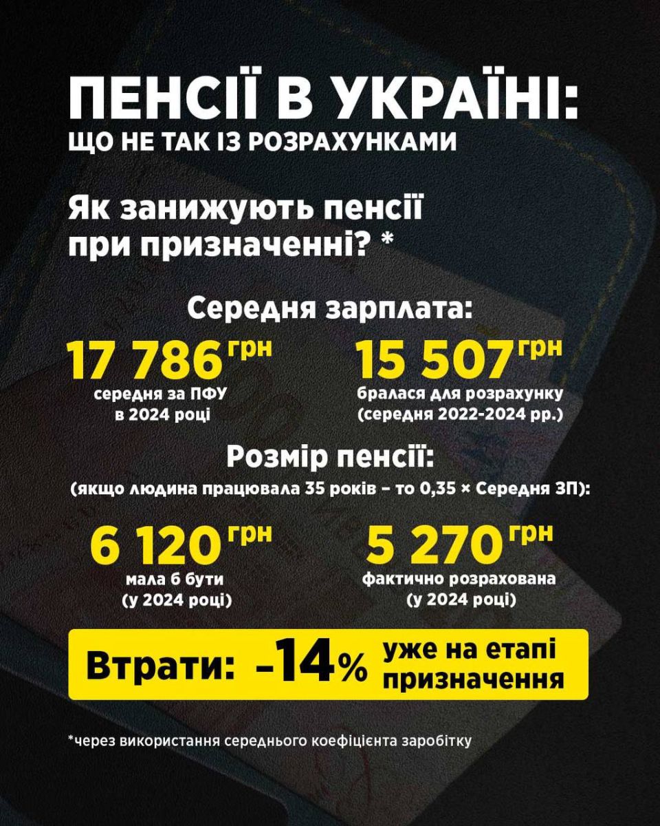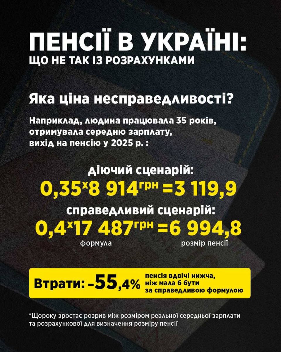 «Человек, проработавший 35 лет и получивший среднюю зарплату, сегодня при выходе на пенсию в 2025 году по действующей формуле получит всего около 3119 гривен. А по другой, еще более справедливой системе расчета, пенсия должна составлять примерно 6995 гривен. «Мелочь» в 55,4%, от которой зависит, сможет ли человек жить или выжить», — сказал Гетманцев.