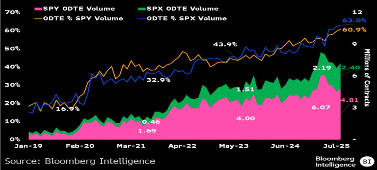 Торговля опционами на S&P 500 продолжает переходить на опционы того же дня, поскольку трейдеры стремятся к эффективности капитала и избегают ночного риска.