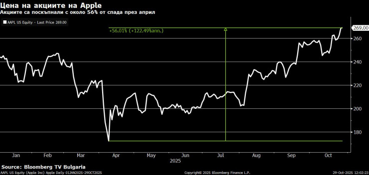 Акции компании из Купертино, штат Калифорния, выросли более чем на 56 процентов с апрельского минимума, увеличив рыночную капитализацию компании примерно на 1,4 триллиона долларов, поскольку оптимизм по поводу обновленной линейки iPhone и ослабление торгового давления поддерживали акции в последние месяцы.