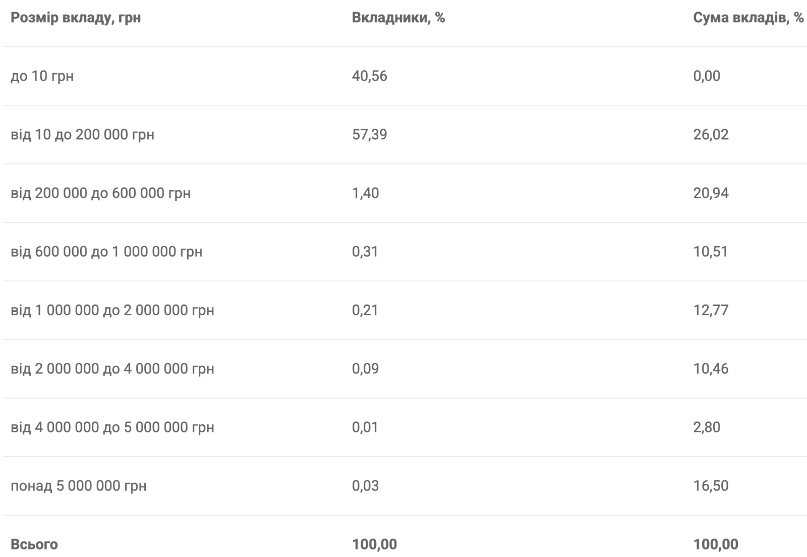 На 1 апреля 2026 года распределение вкладов физических лиц в банковской системе по размерам выглядит так:
