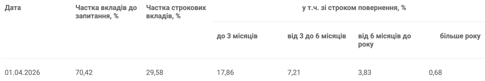 - вклады в национальной валюте — 1 073,4 млрд грн (-9,7 млрд грн за март 2026 года);