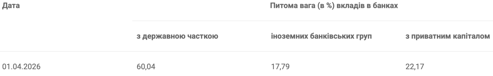 - вклады в иностранной валюте — 573,8 млрд грн (+5,8 млрд грн за март 2026 года).